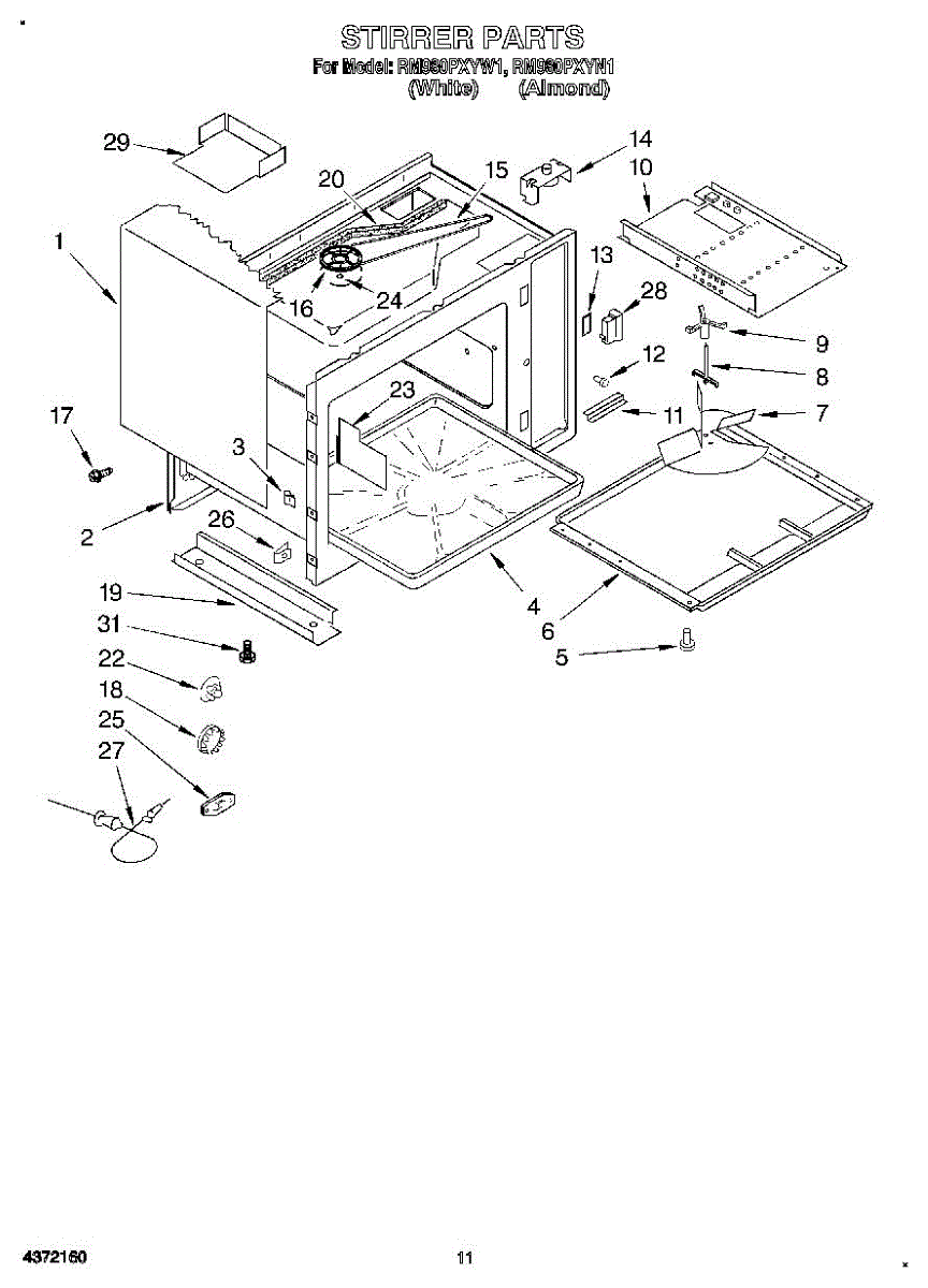 Parts for Whirlpool RM980PXYN1: 11 - Stirrer Parts