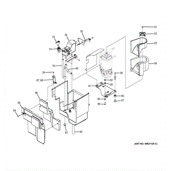 This molded plastic ice chute funnels cubed ice from the freezer dispenser into a glass or container, preventing spills and guiding ice smoothly through the dispenser opening. Fits into the dispenser housing for reliable ice delivery. What it does: