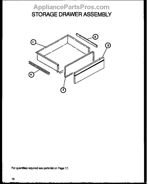 Parts for Amana AGS780WW-P1168602W: Storage Drawer Assembly Parts