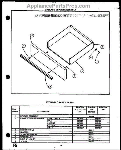 Parts for Caloric EHA312-OP: Storage Drawer Assembly (Eha312) (Eha335) (Eja312) (Eja335) (Eha394) (Eja394) (Eha315) (Eja315) (Eha395) (Eja395) (Eha353) (Eha214) (Eja214) Parts