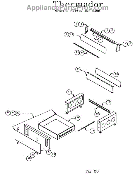 Parts for Thermador RDF30RS / 9707 & UP: Storage Drawer And Base Parts