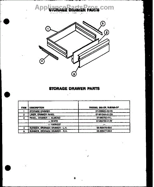 Parts for Caloric RHS353-OF: Storage Drawer Parts