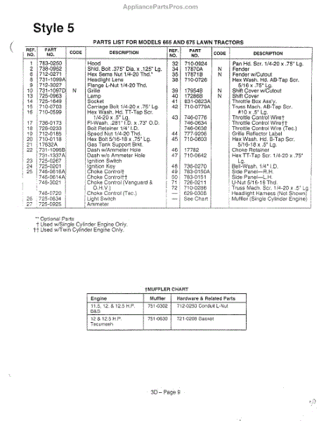 Parts for Mtd 136M670G788: Style 5 Page 2 Parts