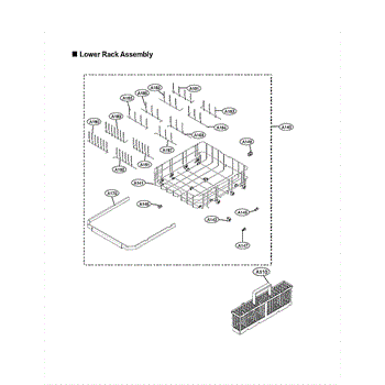 The Lower Rack is an OEM part for LG dishwashers. It is the heavy-duty rack positioned on the bottom shelf of the dishwasher that accommodates larger pots, pans and utensils. This lower rack utilizes sturdy prongs and wires to hold dishes securely in place during the cleaning cycles.