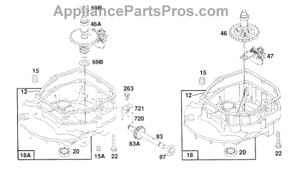 Parts for Briggs & Stratton 126702-3101-01: Sump Base Assemblies Parts