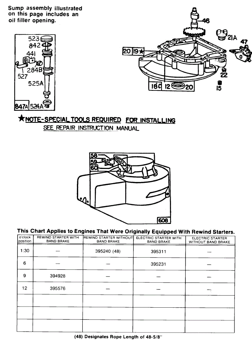 Parts for Briggs & Stratton 093582-5219-99: Sump Base, Blower Hsg. Chart Parts