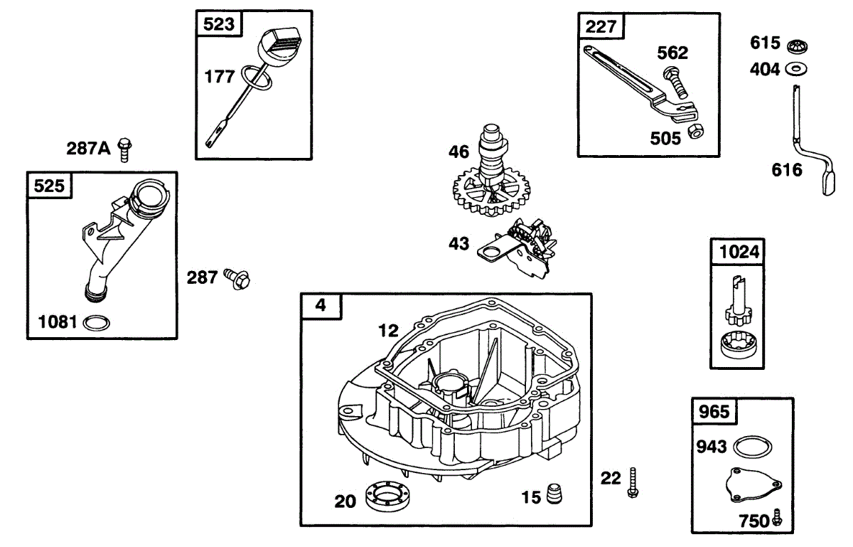 Parts for Briggs & Stratton 097777-0324-A1: Sump Base, Gears Parts