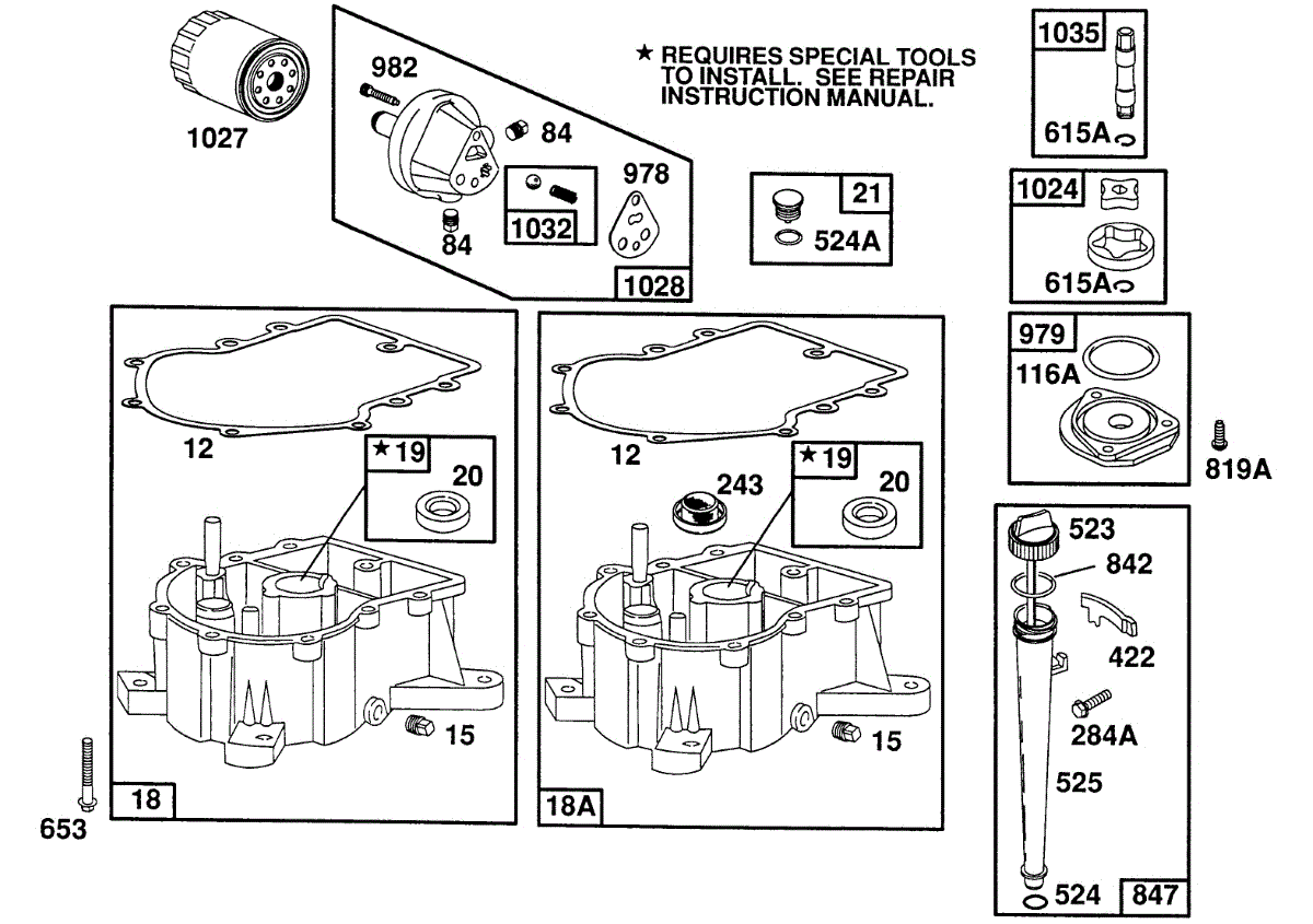 Parts for Briggs & Stratton 400777-1203-01: Sump Base, Oil Pump Parts