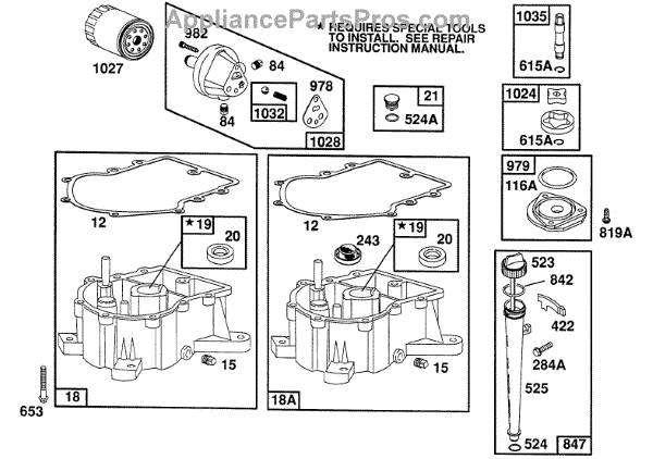 Parts for Briggs & Stratton 400777-1219-01: Sump Base, Oil Pump Parts