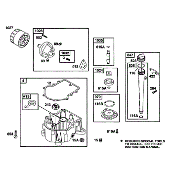 Parts for Briggs & Stratton 42C777-1237-01: Sump Base, Oil Grp Parts