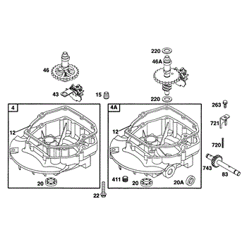 Parts for Briggs & Stratton 12M802-0850-A1: Sump Bases, Cams Parts