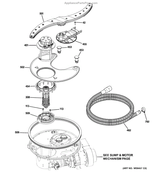 The Sump Gasket is an OEM part for GE dishwashers. It forms a watertight seal around the sump area, preventing leaks and ensuring proper water circulation within the dishwasher.