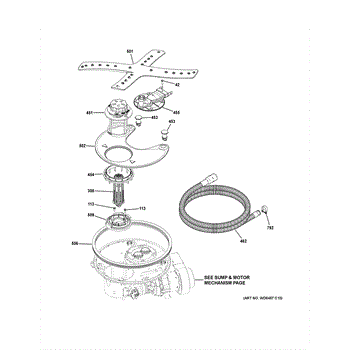 The ADAPTER ASSEMBLY is an OEM part for GE dishwashers. It functions as a connecting link between the water supply line and the spray arm assembly.