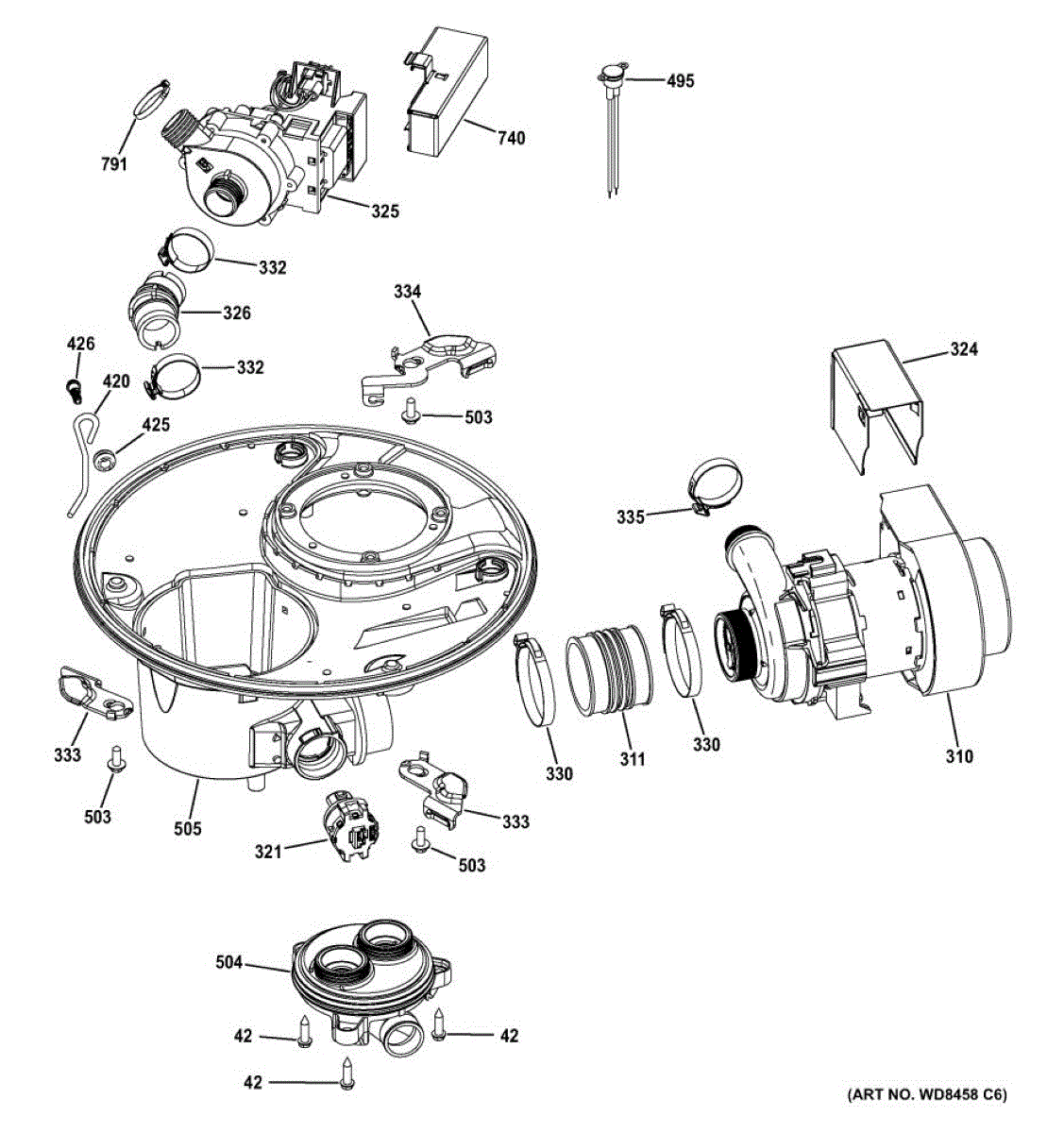 Fix a dishwasher that won't drain properly due to a shifted pump. This support bracket secures the drain pump to the tub for reliable water removal.