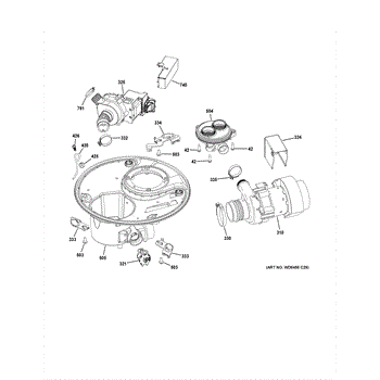 This shield wash pump circulates dishwasher wash water so dishes get cleaned and rinsed effectively. Replaces a failed or noisy pump to restore normal wash performance and water movement inside the tub. What it does: