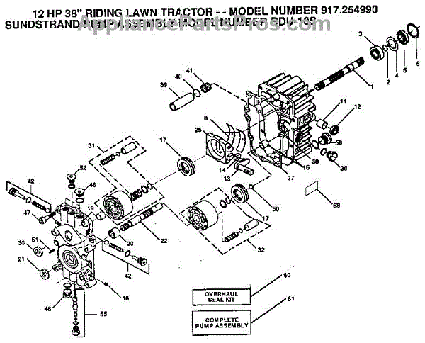 Parts for Craftsman 917254990: Sundstrand Pump Assy Model No. Bdu-10S Parts