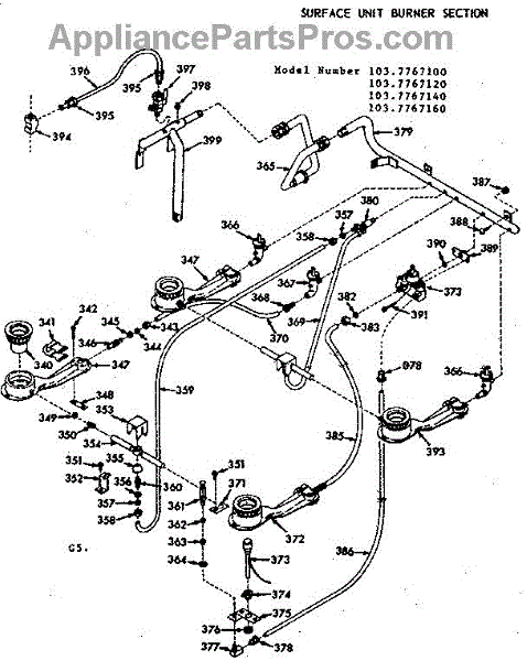 Parts for Kenmore 103.7767100 (1037767100, 103 7767100): Surface Unit Burner Section Parts