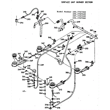 Parts for Kenmore 103.7767120 (1037767120, 103 7767120): Surface Unit Burner Section Parts