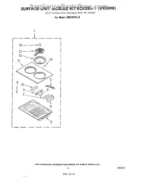 Complete stainless steel cook top cartridge. For individual elements order WP660533 or WP660532.