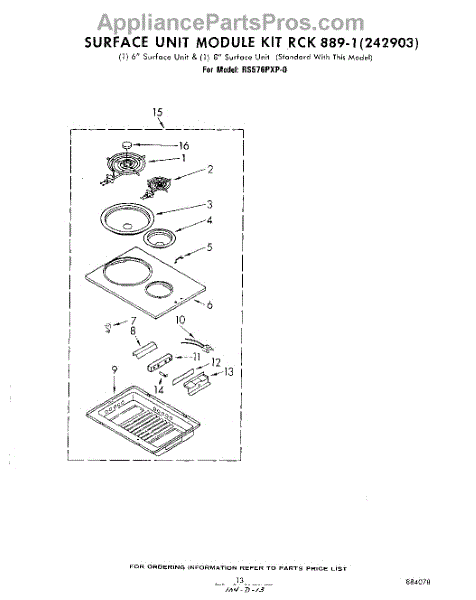 Complete stainless steel cook top cartridge. For individual elements order WP660533 or WP660532.