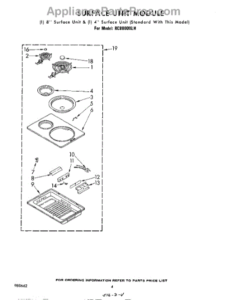 Complete stainless steel cook top cartridge. For individual elements order WP660533 or WP660532.