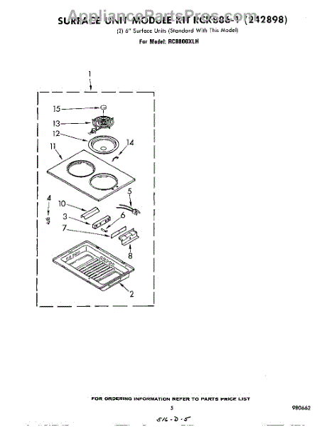 Parts for Whirlpool RC8800XLH: 04 - Surface Unit Rck886-1 (242898) Parts