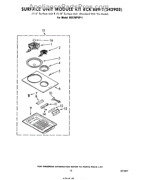 Complete stainless steel cook top cartridge. For individual elements order WP660533 or WP660532.