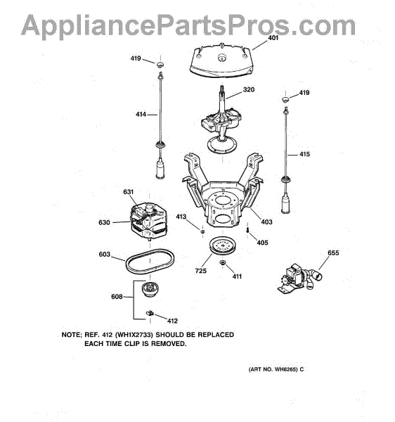 For retaining clip separately use WH1X2733. For washers with removable front panel.