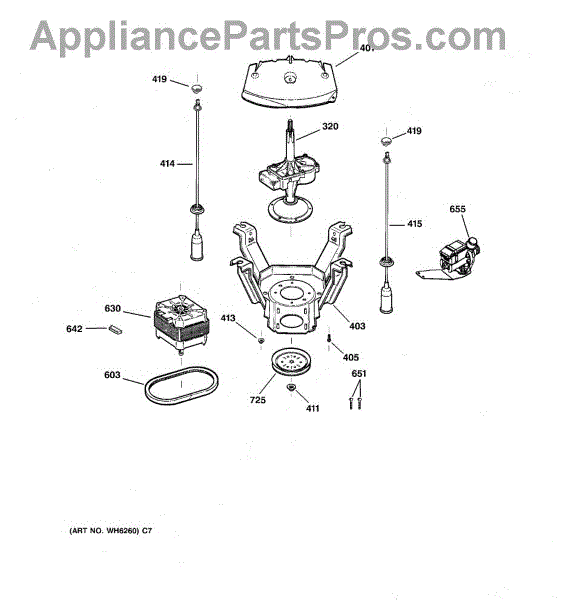 Supports the washer tub and absorbs vibration during cycles. Replace if corroded, worn, or broken to prevent drum sagging and banging during operation.