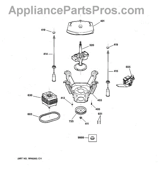 The Suspension Rod & Spring Assembly is an OEM part for GE washing machines. This assembly includes a rod and spring that supports the washer tub, helping to absorb shocks and reduce vibrations during the wash and spin cycles.