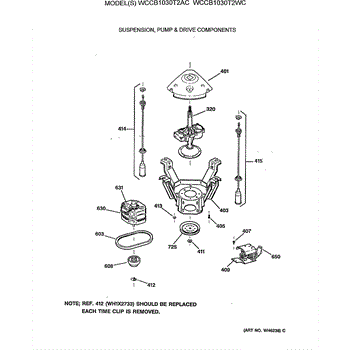For retaining clip separately use WH1X2733. For washers with removable front panel.