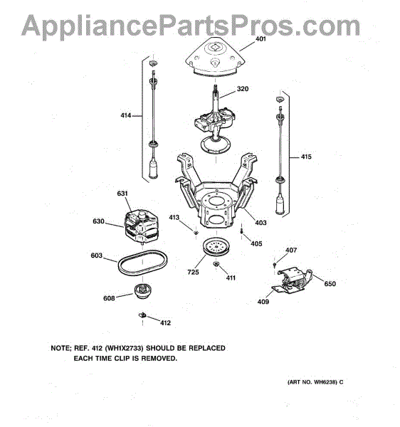 For retaining clip separately use WH1X2733. For washers with removable front panel.