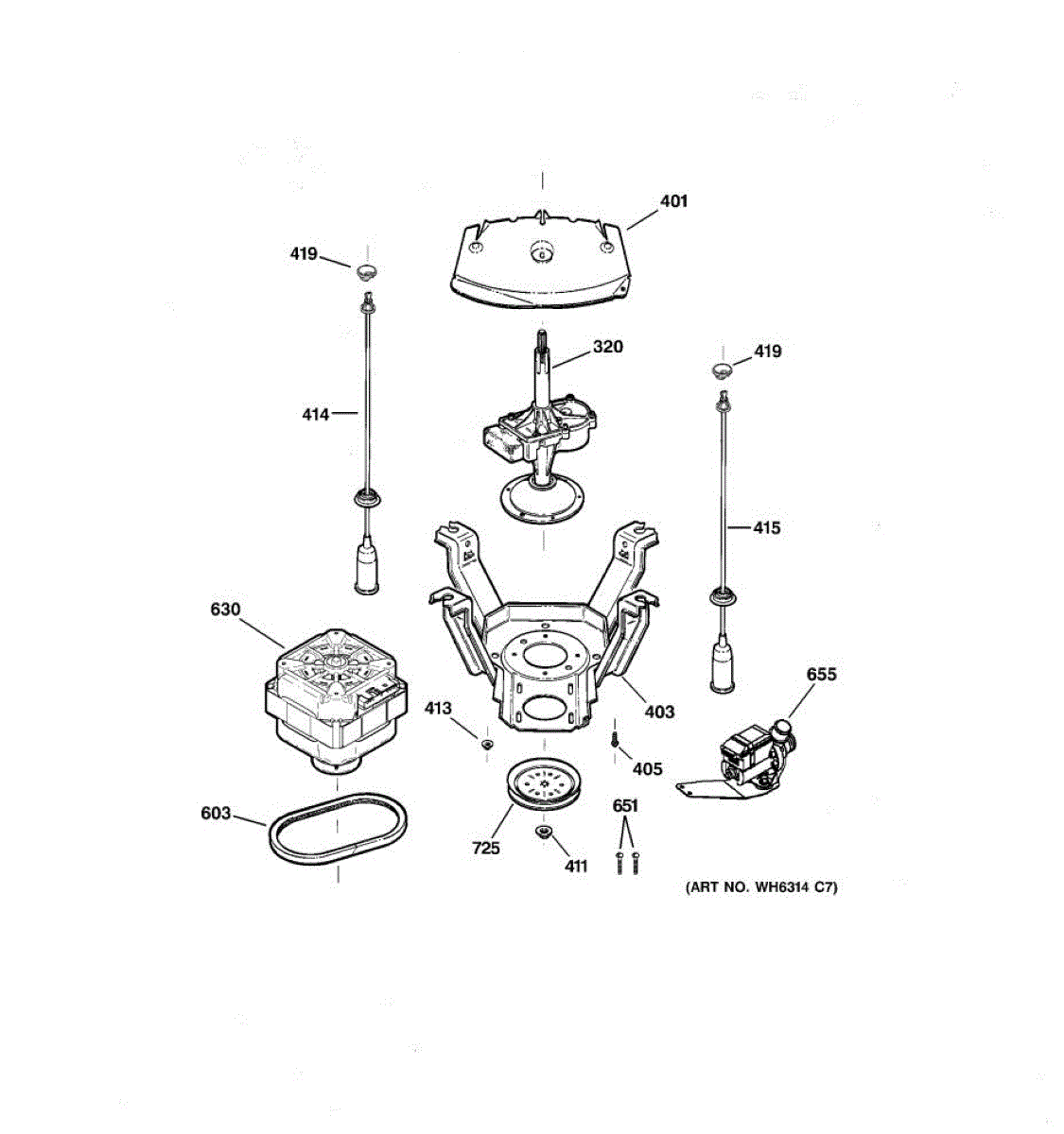 Parts for Ge WHDSR209D3WW: 04 - Suspension, Pump & Drive Components Parts