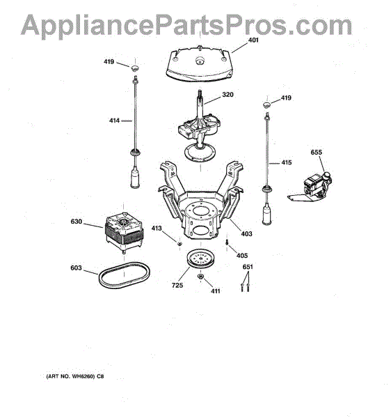 The Suspension Rod & Spring Assembly is an OEM part for GE washing machines. This assembly includes a rod and spring that supports the washer tub, helping to absorb shocks and reduce vibrations during the wash and spin cycles.