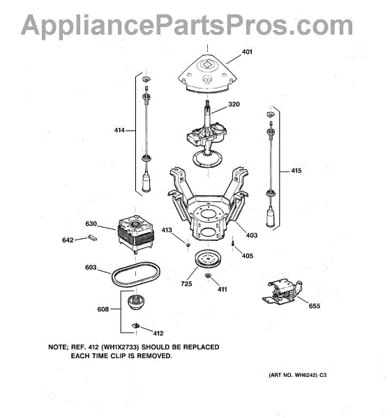 For retaining clip separately use WH1X2733. For washers with removable front panel.