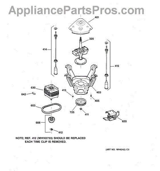 For retaining clip separately use WH1X2733. For washers with removable front panel.