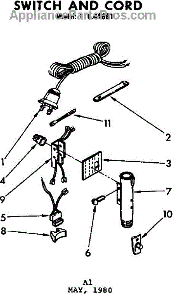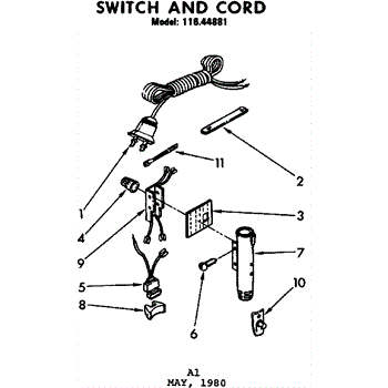 Parts for Kenmore 116.44881 (11644881, 116 44881): Switch And Cord Parts