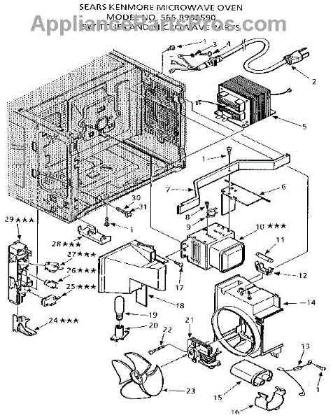 Parts for Kenmore 565.8962590 (5658962590, 565 8962590): Switches And Microwave Parts