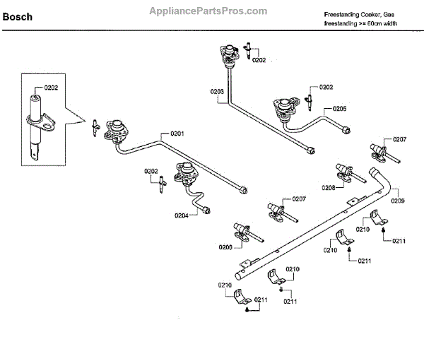 The Orifice Holder Assembly is an OEM part for Bosch gas ranges. It securely holds the orifice which regulate gas flow to each burner, allowing flame levels to be finely tuned during cooking.