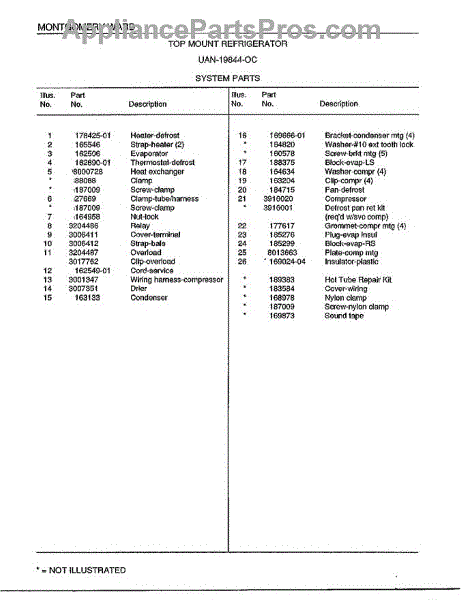 Parts for Frigidaire 19844C: System Parts