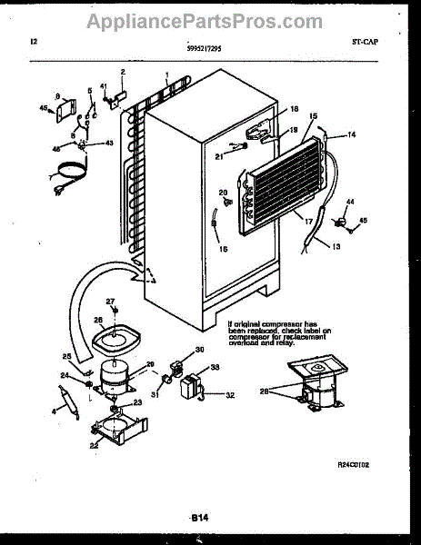 This is a compressor used in several types of home appliances. The compressor is designed to take cold gas in the appliance and place it under pressure so the gas raises in temperature. It is then moved through the refrigerator system to ensure the unit stays cold throughout the appliance. This part can become damaged or malfunction, which may cause the motor to stop running, make the motor noisier, or cause the motor to never stop running.If this happens, the compressor will need to be replaced. A basic set of tools will be needed. A pair of work gloves can also be useful. First, locate the compressor as it may be in various locations depending on the appliance model. Unplug the appliance before removing the compressor. Install the new compressor using the original bolts and nuts before turning the power back on and resuming normal use.This part is sold on an individual basis. The compressor is made to be used with refrigerators, ranges, stoves, ovens, air conditioners, and freezers created by Gibson, Frigidaire, Kelvinator, Montgomery Wards, Westinghouse, Tappan, JCPenney, Universal, and Kenmore. It is an authentic OEM replacement part directly sourced from the manufacturer.