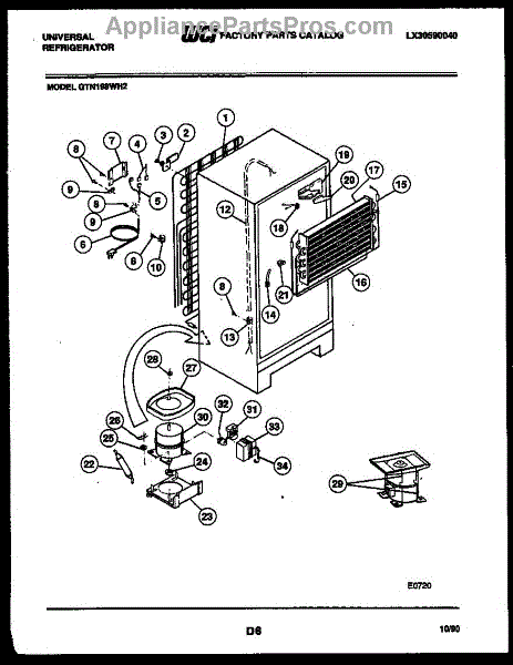 This is a compressor used in several types of home appliances. The compressor is designed to take cold gas in the appliance and place it under pressure so the gas raises in temperature. It is then moved through the refrigerator system to ensure the unit stays cold throughout the appliance. This part can become damaged or malfunction, which may cause the motor to stop running, make the motor noisier, or cause the motor to never stop running.If this happens, the compressor will need to be replaced. A basic set of tools will be needed. A pair of work gloves can also be useful. First, locate the compressor as it may be in various locations depending on the appliance model. Unplug the appliance before removing the compressor. Install the new compressor using the original bolts and nuts before turning the power back on and resuming normal use.This part is sold on an individual basis. The compressor is made to be used with refrigerators, ranges, stoves, ovens, air conditioners, and freezers created by Gibson, Frigidaire, Kelvinator, Montgomery Wards, Westinghouse, Tappan, JCPenney, Universal, and Kenmore. It is an authentic OEM replacement part directly sourced from the manufacturer.