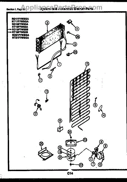 Parts for Frigidaire RD19F7WS3B: 18 - System And Automatic Defrost Parts