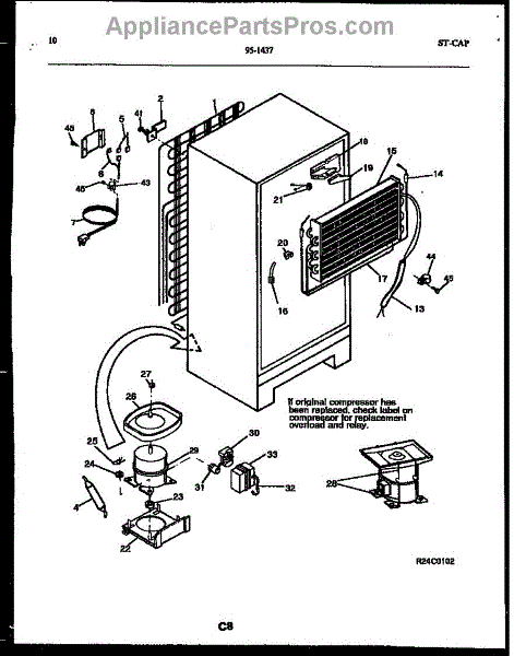 This is a compressor used in several types of home appliances. The compressor is designed to take cold gas in the appliance and place it under pressure so the gas raises in temperature. It is then moved through the refrigerator system to ensure the unit stays cold throughout the appliance. This part can become damaged or malfunction, which may cause the motor to stop running, make the motor noisier, or cause the motor to never stop running.If this happens, the compressor will need to be replaced. A basic set of tools will be needed. A pair of work gloves can also be useful. First, locate the compressor as it may be in various locations depending on the appliance model. Unplug the appliance before removing the compressor. Install the new compressor using the original bolts and nuts before turning the power back on and resuming normal use.This part is sold on an individual basis. The compressor is made to be used with refrigerators, ranges, stoves, ovens, air conditioners, and freezers created by Gibson, Frigidaire, Kelvinator, Montgomery Wards, Westinghouse, Tappan, JCPenney, Universal, and Kenmore. It is an authentic OEM replacement part directly sourced from the manufacturer.