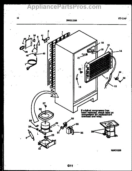 This is a compressor used in several types of home appliances. The compressor is designed to take cold gas in the appliance and place it under pressure so the gas raises in temperature. It is then moved through the refrigerator system to ensure the unit stays cold throughout the appliance. This part can become damaged or malfunction, which may cause the motor to stop running, make the motor noisier, or cause the motor to never stop running.If this happens, the compressor will need to be replaced. A basic set of tools will be needed. A pair of work gloves can also be useful. First, locate the compressor as it may be in various locations depending on the appliance model. Unplug the appliance before removing the compressor. Install the new compressor using the original bolts and nuts before turning the power back on and resuming normal use.This part is sold on an individual basis. The compressor is made to be used with refrigerators, ranges, stoves, ovens, air conditioners, and freezers created by Gibson, Frigidaire, Kelvinator, Montgomery Wards, Westinghouse, Tappan, JCPenney, Universal, and Kenmore. It is an authentic OEM replacement part directly sourced from the manufacturer.