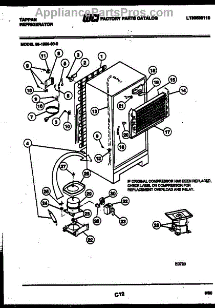 This is a compressor used in several types of home appliances. The compressor is designed to take cold gas in the appliance and place it under pressure so the gas raises in temperature. It is then moved through the refrigerator system to ensure the unit stays cold throughout the appliance. This part can become damaged or malfunction, which may cause the motor to stop running, make the motor noisier, or cause the motor to never stop running.If this happens, the compressor will need to be replaced. A basic set of tools will be needed. A pair of work gloves can also be useful. First, locate the compressor as it may be in various locations depending on the appliance model. Unplug the appliance before removing the compressor. Install the new compressor using the original bolts and nuts before turning the power back on and resuming normal use.This part is sold on an individual basis. The compressor is made to be used with refrigerators, ranges, stoves, ovens, air conditioners, and freezers created by Gibson, Frigidaire, Kelvinator, Montgomery Wards, Westinghouse, Tappan, JCPenney, Universal, and Kenmore. It is an authentic OEM replacement part directly sourced from the manufacturer.