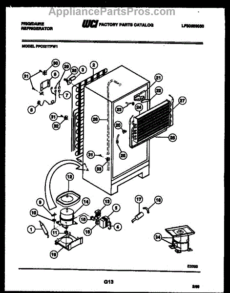 This is a compressor used in several types of home appliances. The compressor is designed to take cold gas in the appliance and place it under pressure so the gas raises in temperature. It is then moved through the refrigerator system to ensure the unit stays cold throughout the appliance. This part can become damaged or malfunction, which may cause the motor to stop running, make the motor noisier, or cause the motor to never stop running.If this happens, the compressor will need to be replaced. A basic set of tools will be needed. A pair of work gloves can also be useful. First, locate the compressor as it may be in various locations depending on the appliance model. Unplug the appliance before removing the compressor. Install the new compressor using the original bolts and nuts before turning the power back on and resuming normal use.This part is sold on an individual basis. The compressor is made to be used with refrigerators, ranges, stoves, ovens, air conditioners, and freezers created by Gibson, Frigidaire, Kelvinator, Montgomery Wards, Westinghouse, Tappan, JCPenney, Universal, and Kenmore. It is an authentic OEM replacement part directly sourced from the manufacturer.