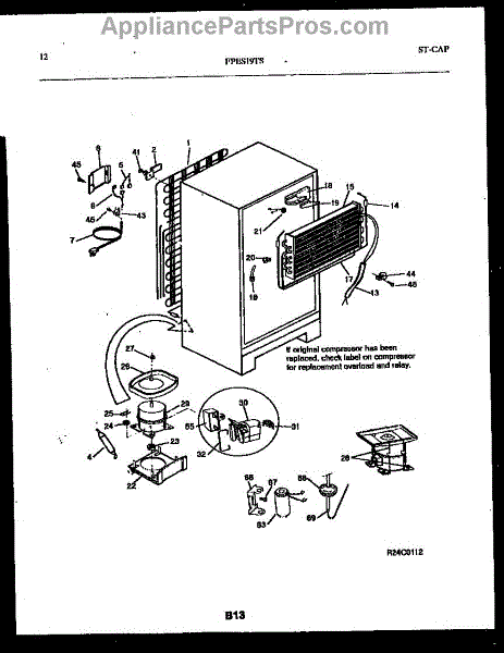This is a compressor used in several types of home appliances. The compressor is designed to take cold gas in the appliance and place it under pressure so the gas raises in temperature. It is then moved through the refrigerator system to ensure the unit stays cold throughout the appliance. This part can become damaged or malfunction, which may cause the motor to stop running, make the motor noisier, or cause the motor to never stop running.If this happens, the compressor will need to be replaced. A basic set of tools will be needed. A pair of work gloves can also be useful. First, locate the compressor as it may be in various locations depending on the appliance model. Unplug the appliance before removing the compressor. Install the new compressor using the original bolts and nuts before turning the power back on and resuming normal use.This part is sold on an individual basis. The compressor is made to be used with refrigerators, ranges, stoves, ovens, air conditioners, and freezers created by Gibson, Frigidaire, Kelvinator, Montgomery Wards, Westinghouse, Tappan, JCPenney, Universal, and Kenmore. It is an authentic OEM replacement part directly sourced from the manufacturer.