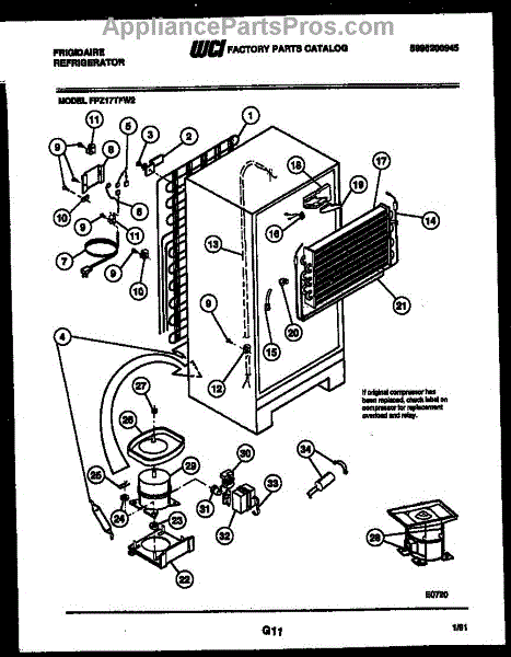 This is a compressor used in several types of home appliances. The compressor is designed to take cold gas in the appliance and place it under pressure so the gas raises in temperature. It is then moved through the refrigerator system to ensure the unit stays cold throughout the appliance. This part can become damaged or malfunction, which may cause the motor to stop running, make the motor noisier, or cause the motor to never stop running.If this happens, the compressor will need to be replaced. A basic set of tools will be needed. A pair of work gloves can also be useful. First, locate the compressor as it may be in various locations depending on the appliance model. Unplug the appliance before removing the compressor. Install the new compressor using the original bolts and nuts before turning the power back on and resuming normal use.This part is sold on an individual basis. The compressor is made to be used with refrigerators, ranges, stoves, ovens, air conditioners, and freezers created by Gibson, Frigidaire, Kelvinator, Montgomery Wards, Westinghouse, Tappan, JCPenney, Universal, and Kenmore. It is an authentic OEM replacement part directly sourced from the manufacturer.