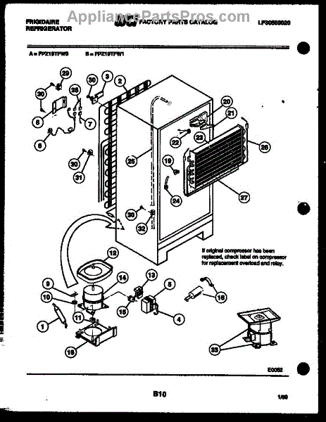 This is a compressor used in several types of home appliances. The compressor is designed to take cold gas in the appliance and place it under pressure so the gas raises in temperature. It is then moved through the refrigerator system to ensure the unit stays cold throughout the appliance. This part can become damaged or malfunction, which may cause the motor to stop running, make the motor noisier, or cause the motor to never stop running.If this happens, the compressor will need to be replaced. A basic set of tools will be needed. A pair of work gloves can also be useful. First, locate the compressor as it may be in various locations depending on the appliance model. Unplug the appliance before removing the compressor. Install the new compressor using the original bolts and nuts before turning the power back on and resuming normal use.This part is sold on an individual basis. The compressor is made to be used with refrigerators, ranges, stoves, ovens, air conditioners, and freezers created by Gibson, Frigidaire, Kelvinator, Montgomery Wards, Westinghouse, Tappan, JCPenney, Universal, and Kenmore. It is an authentic OEM replacement part directly sourced from the manufacturer.